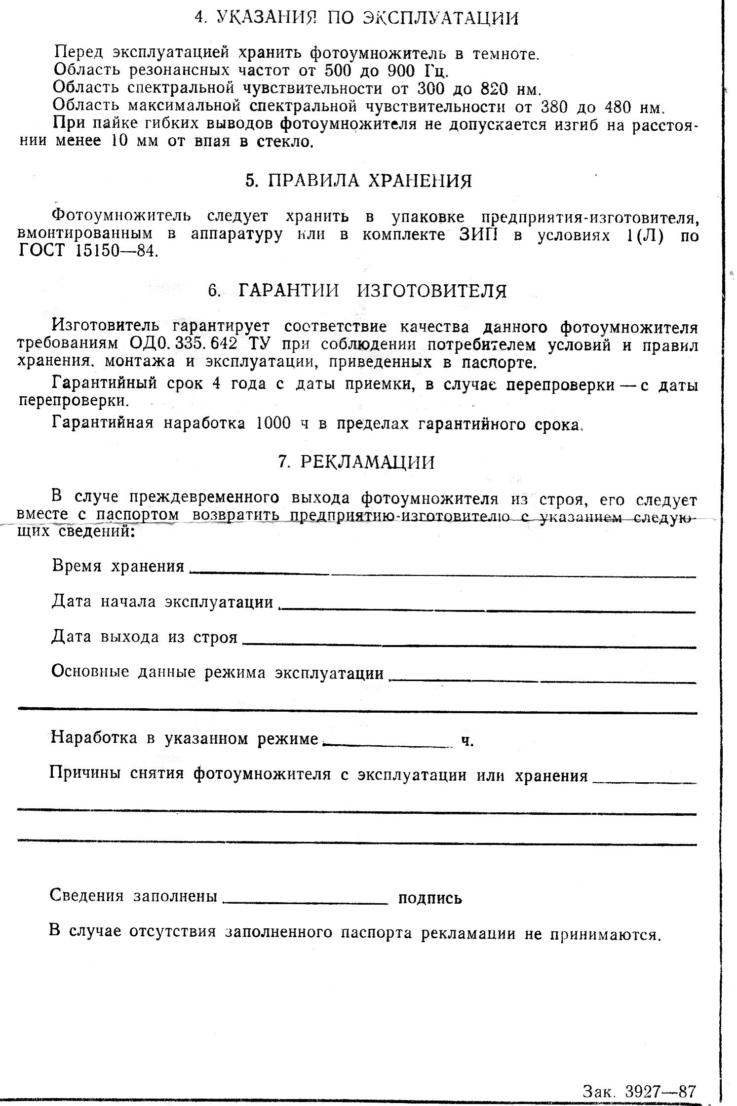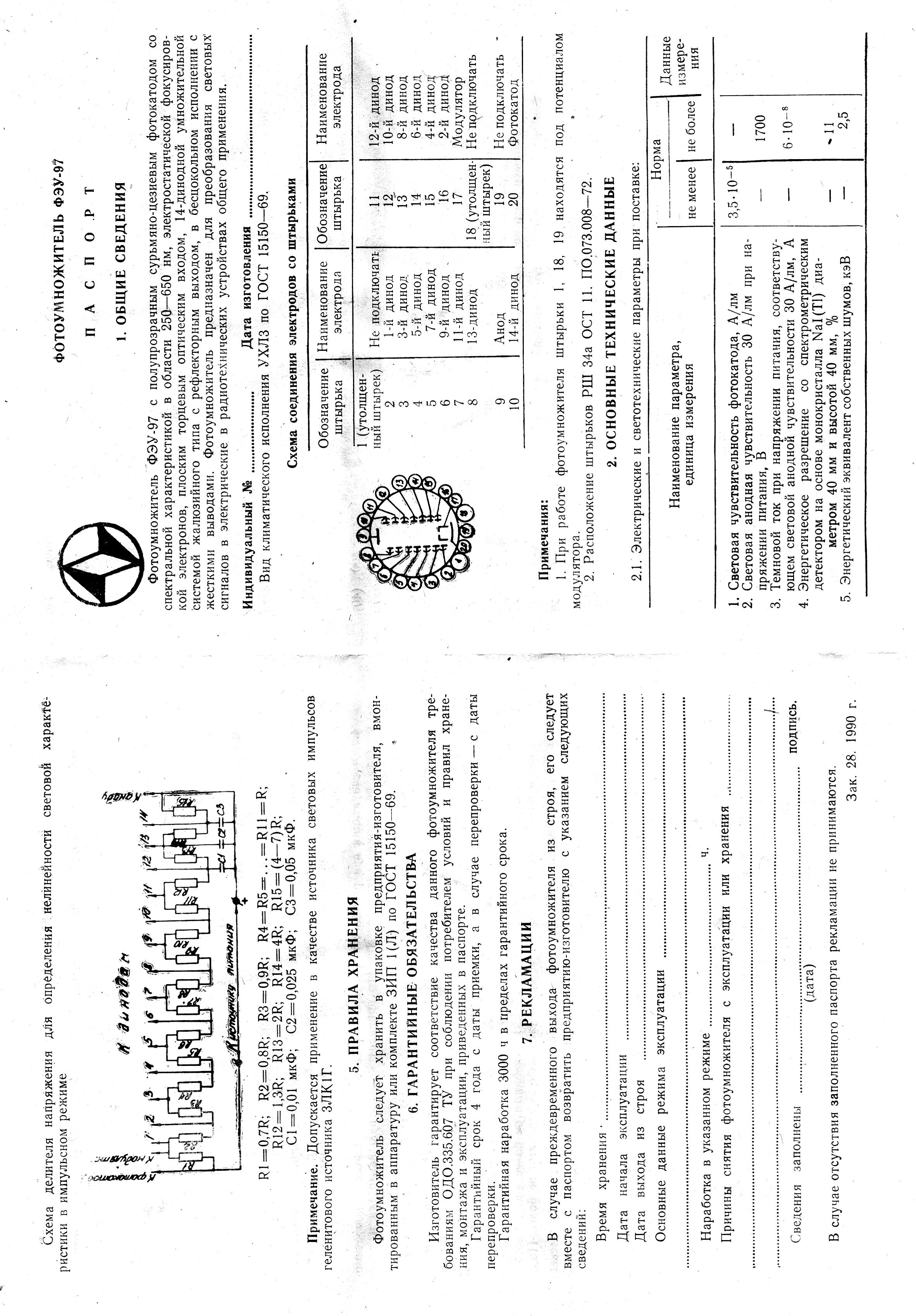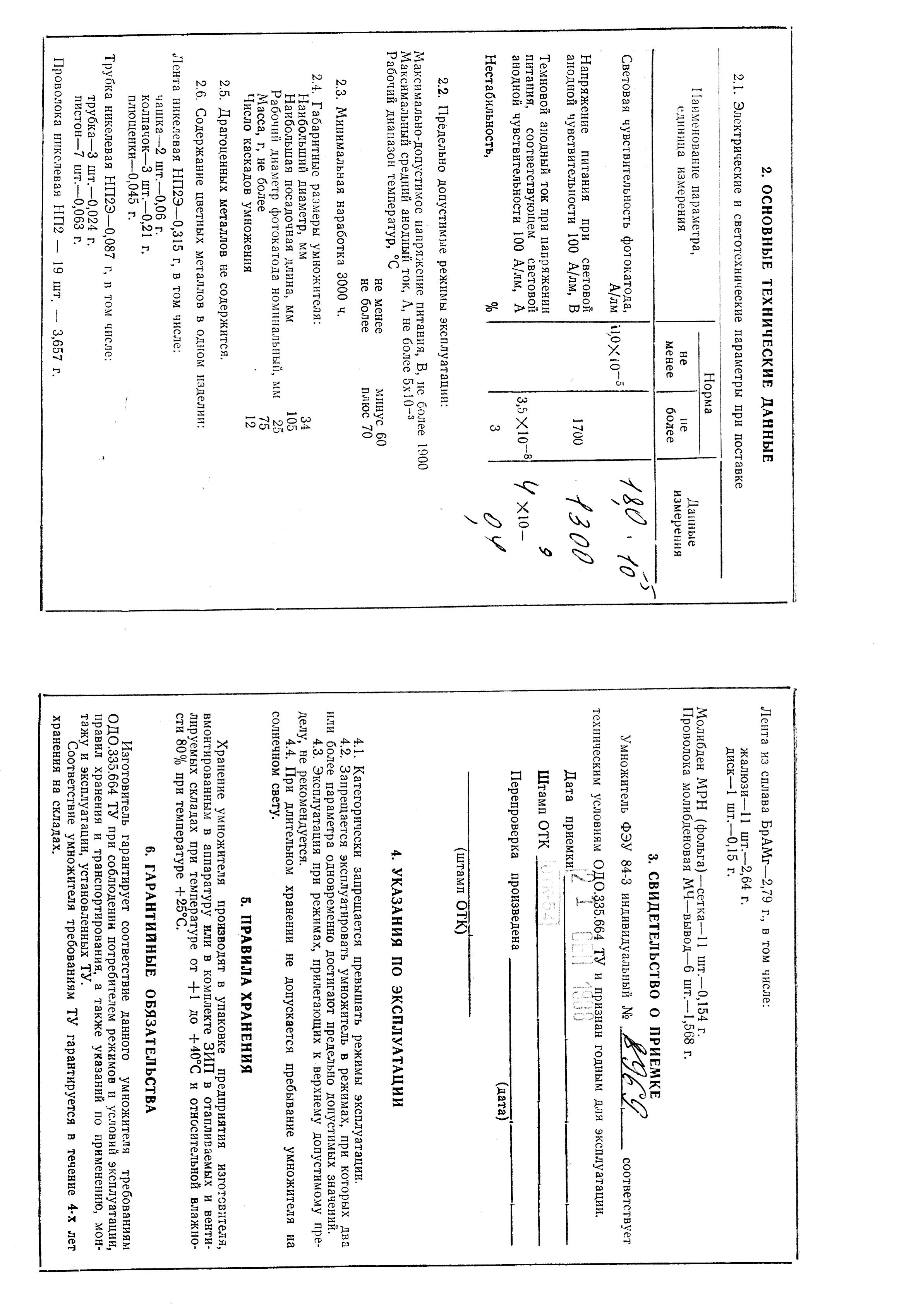 The FEU-84-3 parameters: