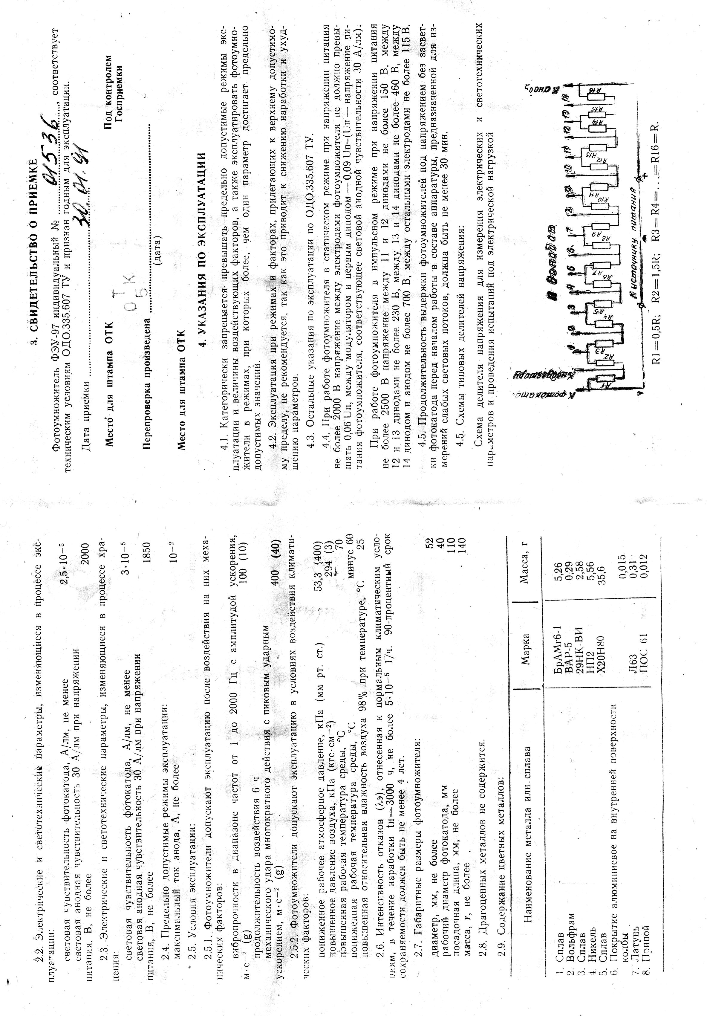 The FEU-30 parameters: