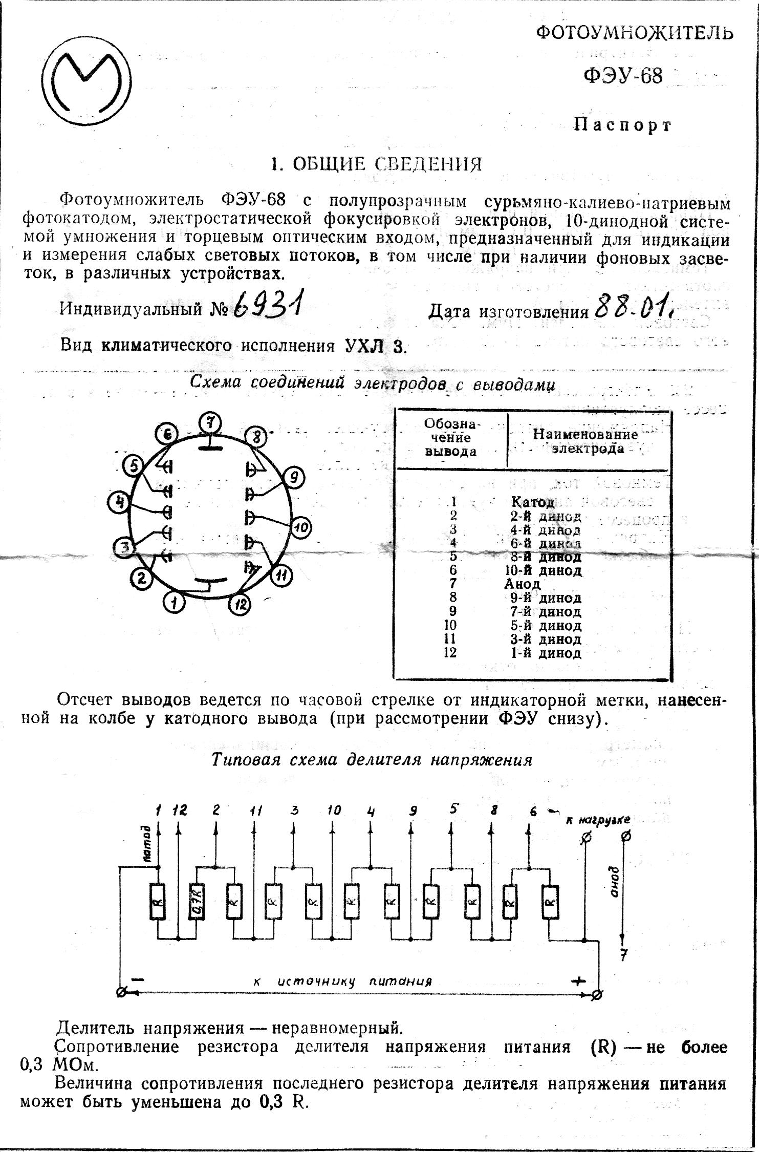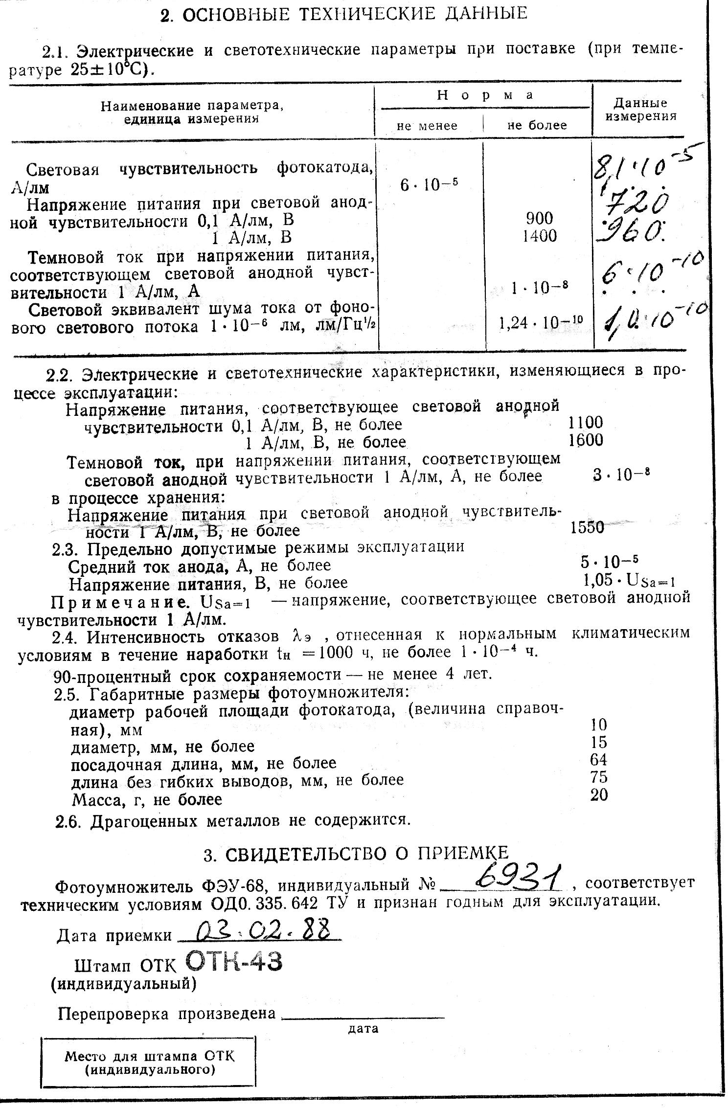 The FEU-68 parameters: