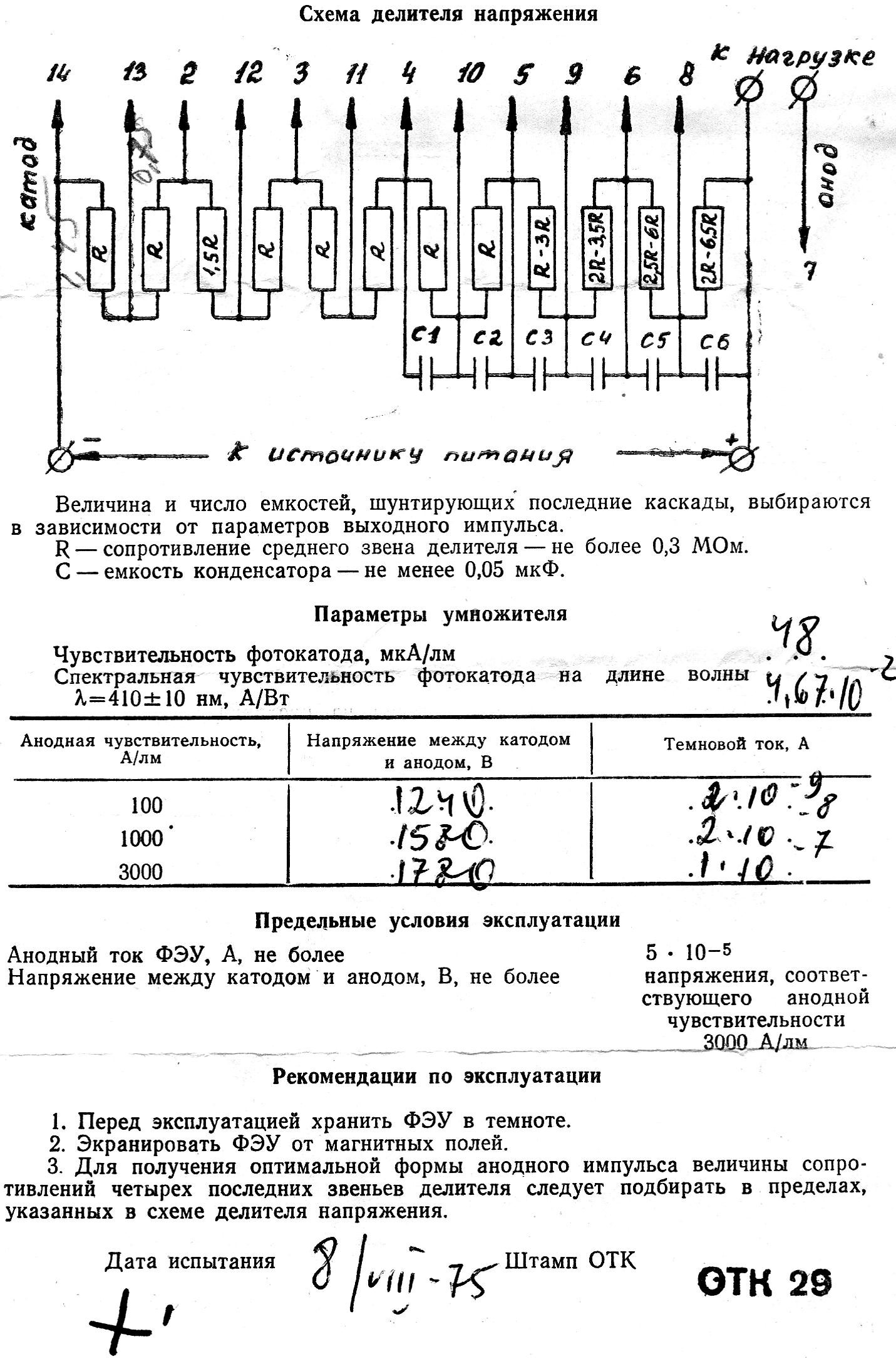 The FEU-130 parameters: