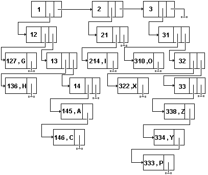 Рис.25. Связанно-связанное связанное индексное хранение списка.